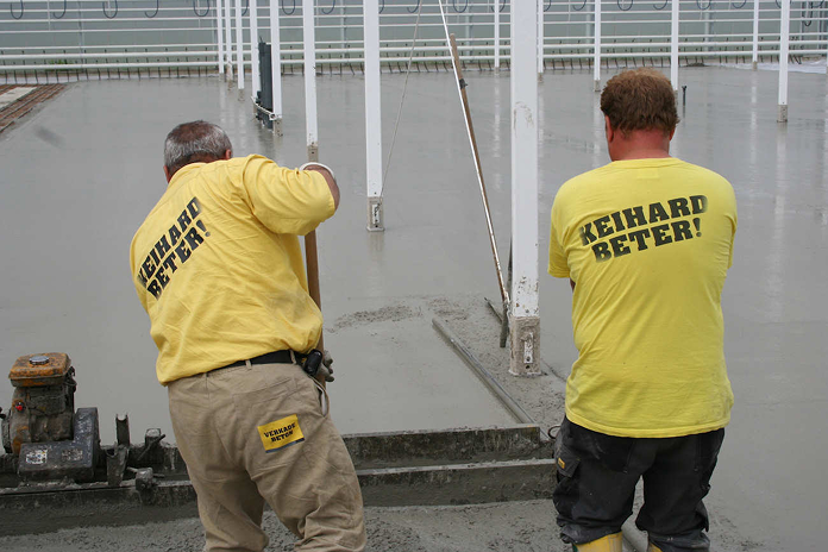 Voor elk project ontwikkelen we samen het beste vloerconcept. Daarbij combineren we technische kennis met slagkracht: een betonvloer is vaak de laatste stap bij de bouw van een kas, en dan moet het snel én goed gebeuren. Onze organisatiegrootte en ervaring zorgen ervoor dat we tot wel 40 hectare per jaar aankunnen. Of het nu om 500 m² gaat of om 30.000 m²: we schakelen snel en blijven flexibel – ook in samenwerking met andere leveranciers of als onderdeel van een bouwteam.
