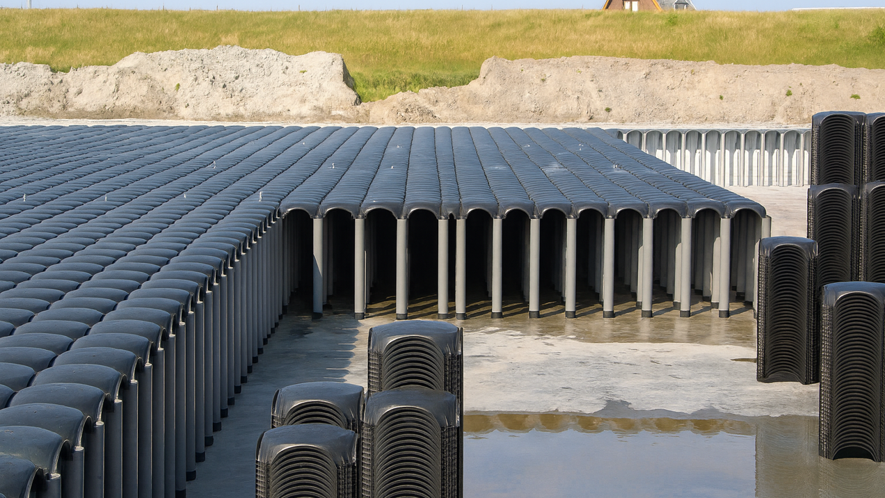 Wij nemen u het complete proces uit handen: van bodemonderzoek en berekeningen tot realisatie en oplevering. Zo leveren we waterbergingssystemen op die niet alleen functioneel zijn, maar ook bijdragen aan een circulaire en klimaatbestendige leefomgeving.